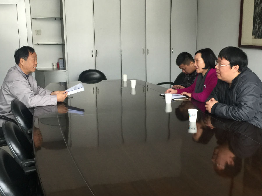 区工信委副书记梅竹(右二)一行与海嘉公司负责人(左一)座谈。