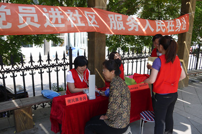 8月25日上午,南关街社区组织12名党员志愿者在南关街125号院内开展了“党员进社区 服务人民在身边”的志愿服务活动,义务为居民提供理发、测量血压、磨剪刀等服务。历经2个多小时的时间,党员志愿者顶着烈日,为居民免费理发、磨刀50余人次,接待居民咨询医保缴纳、大病救助、妇女小额免息贷款等民生政策30余人次,接受血压测量、咨询医疗保健40余人次,发放宣传单100余份。