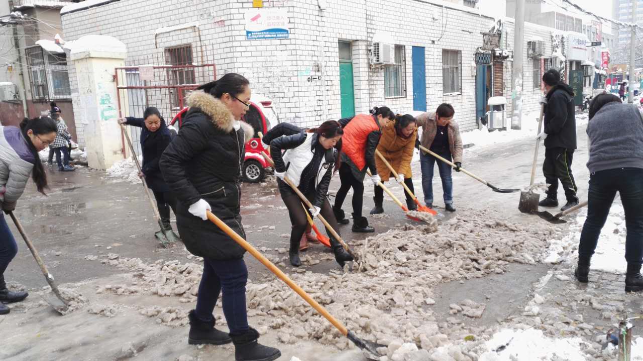 11月22日,郑州出现中到大雪,南关街道办事处立刻立即启动《南关街道办事处除雪应急预案》。采取三项举措确保辖区道路安全通畅,市容整洁有序。一是于22日上午10:00,安排20名协管人员,通知辖区352家沿街商户,待雪停后对门前积雪进行及时清扫。二是将办事处13个科室、11个社区分为6个组,对辖区37条主次干道、117个楼院进行积雪清扫。三是安排城管科、协管人员及环卫人员共计280余人,对辖区7条主干道两侧人行道、绿化带及路面井盖进行全面清扫。至23日上午12:00,南关辖区内37条主次干道及人行道已基本清理完毕,楼院有90余个已清理完毕,居民出行不受影响。降雪出现20多个小时以来,街道工作人员通宵持续奋战,累计出动500余人次,发放铁锹100把、扫把30把、出动大型除雪车2辆、快速保洁车14辆、清理积雪4400方。