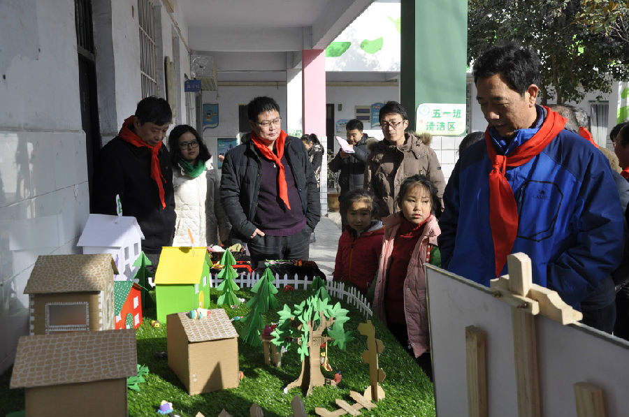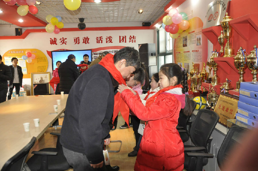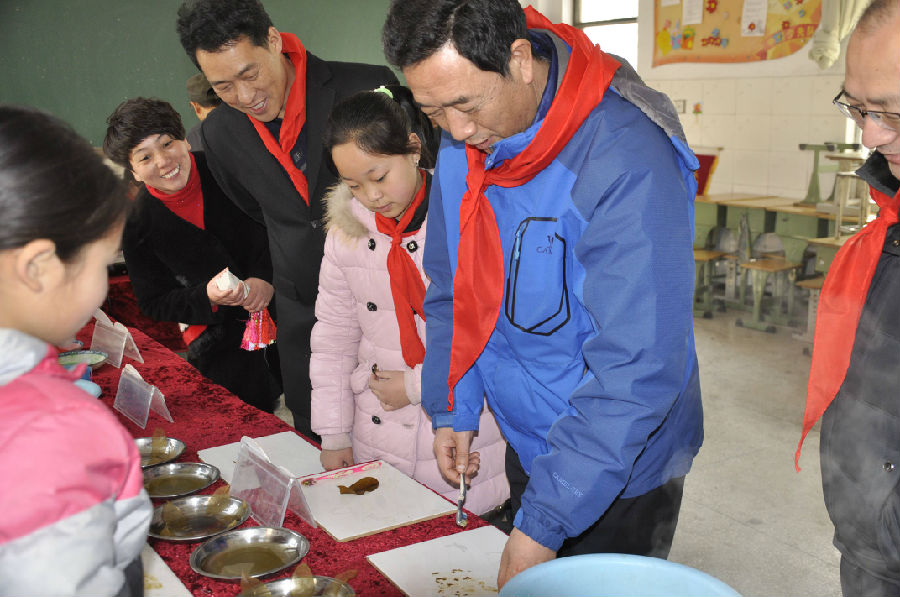 捐赠仪式结束后,薛土岭等领导先后观看了7岁女孩儿吴晶晶的戏曲表演、郎庄小学废立宝环保作品、站马屯小学机器人表演、南小李庄小学的书法艺术等少年宫学校带来的展演,薛主任饶有兴趣的询问了柴郭小学关于叶脉制作的流程,还和孩子们共同制作了带有公鸡图案的吉祥叶脉。最后随着球场上一场精彩的“笼式足球”结束,本次捐赠活动圆满落幕。