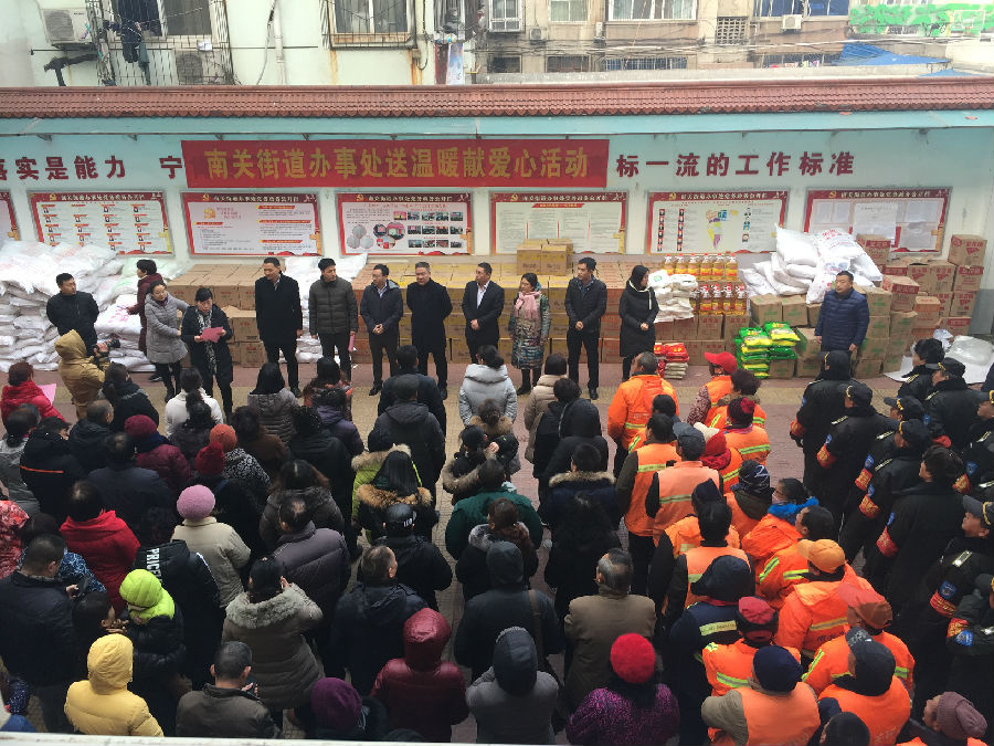 为确保环卫工人困难家庭度过一个欢乐祥和的新春佳节,让他们切实感受到党和政府的关怀,南关街道办事处慰问了坚守在一线岗位的环卫工人。把慰问品发放到大家手上的同时,叮嘱大家注意防寒保暖,感谢他们为创造优美、舒适、洁净的市容环境付出的辛勤劳动和汗水,并叮嘱他们要注意身体,在做好工作的同时,合理安排休息,注意防寒保暖,确保作业安全。