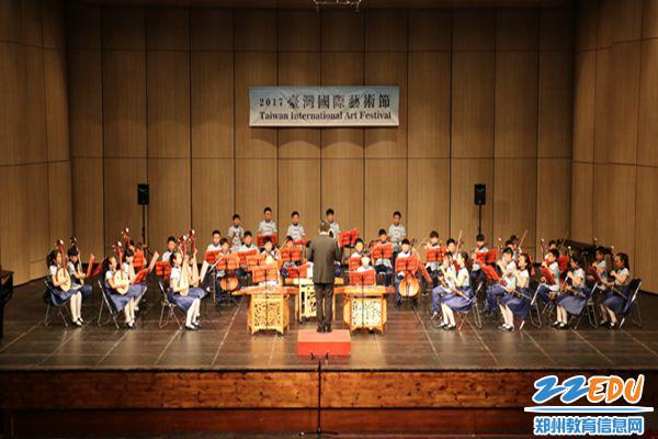 管城回族区工人第二新村小学“尖尖小荷”民乐团在台湾参加“2017台湾艺术节”团体比赛现场