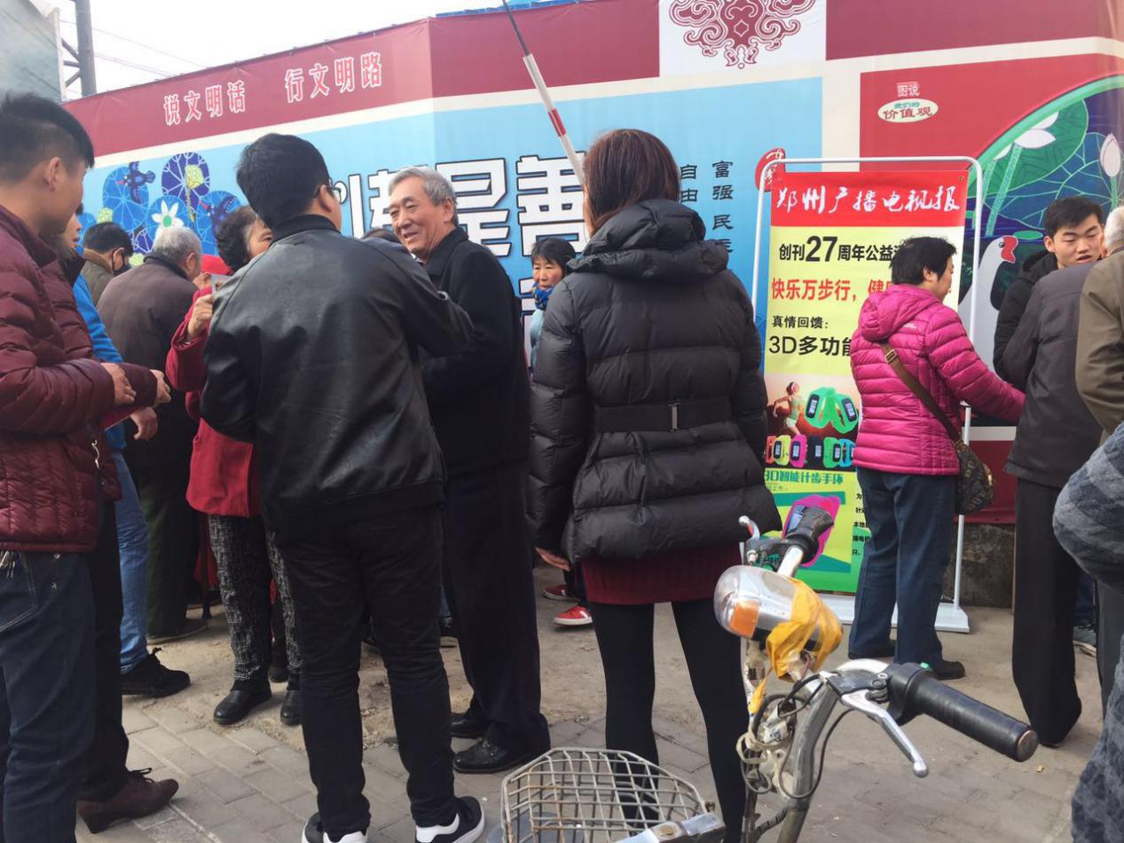 活动现场,工作人员为辖区年满60周岁以上的本地户口市民免费发放礼品并办理免费申领3D多功能计步手环登记。本次活动还邀请50年金婚以上的老年夫妻免费拍摄婚纱照,更能享受免费赠送半年的《郑州广播电视报》。辖区60岁以上的居民踊跃参与,活动取得圆满成功。