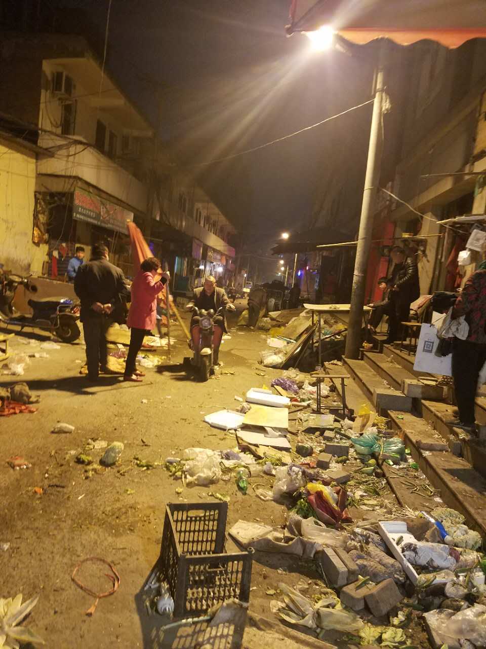 3月29日晚十点,南关街道办事处城管科联合执法三中队、协管人员共70余人,针对辖区菜场街脏乱差的情况进行了全面彻底的清理。全程行动持续4个小时至凌晨2点,其中清运垃圾杂物22车,拆除破损门头14个,清理各类广告条幅117个。清理完成后,对道路进行了反复清扫和冲刷,次日早上九点对菜场街进行了巩固清理,菜场街面貌焕然一新。