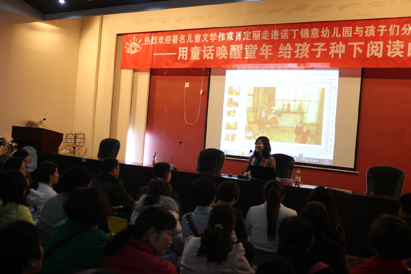 3月31日下午,南关办事处锦艺新时代社区联合辖区诺丁锦意幼儿园在社区多功能会议室开展“用童话唤醒童年,让阅读成为习惯”活动,特邀著名儿童文学作家肖定丽老师以及儿童家长共300余人参加此次活动。肖老师从四个方面讲述了如何培养孩子对读书的兴趣。