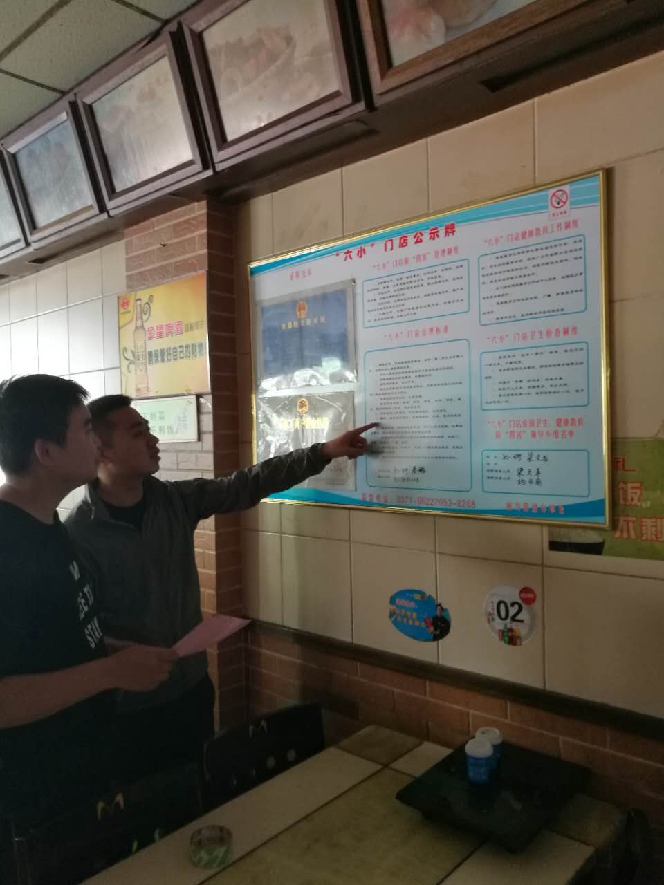 “上上课”,制度证照上墙。街道印制了400份《致“六小”店主的一封信》,逐店发放、逐人讲解;按照“六小”类型,制作了“六小门店”规范管理公示牌340块,写清各类标准,明确各级分包人员,公示联系方式。