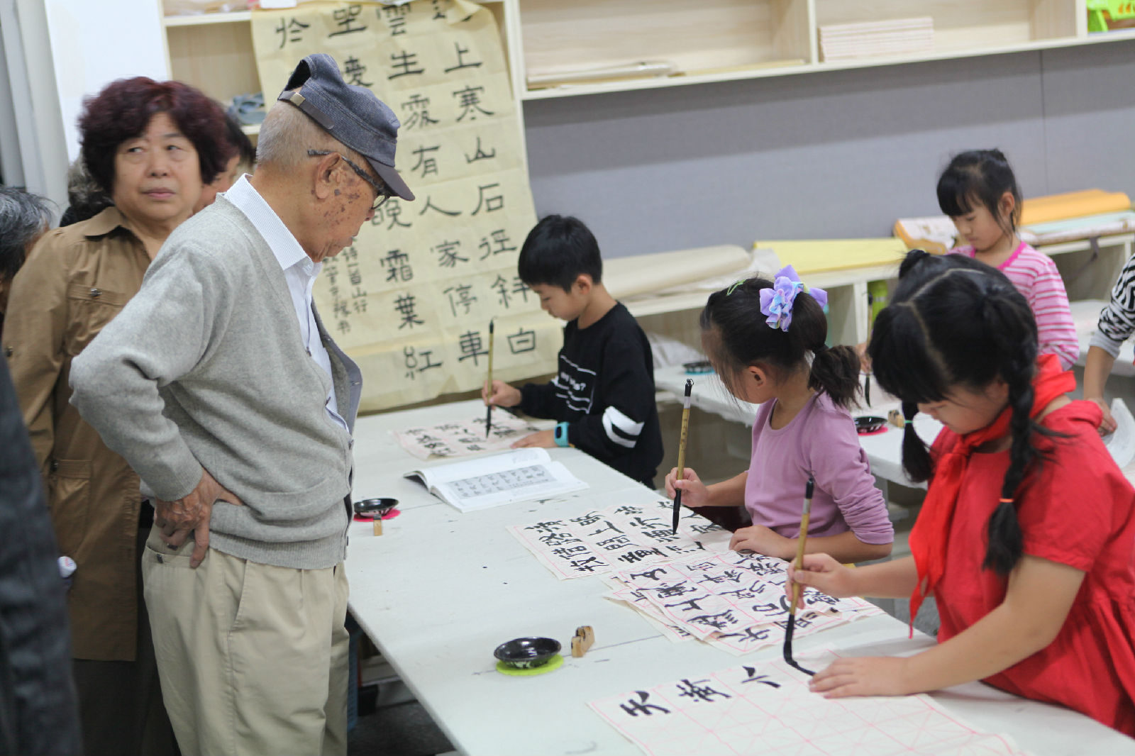 离退休老干部视察学校书法教学