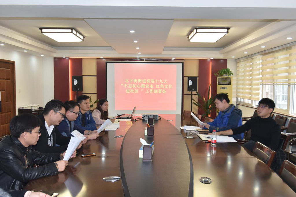 10月16日,北下街街道组织召开喜迎十九大“不忘初心跟党走 红色文化进社区”工作部署会,会议由党工委委员张鹏飞主持。会上要求街道各社区党支部认真按照《管城回族区喜迎十九大“不忘初心跟党走 红色文化进社区”系列活动工作实施方案》工作要求,制订好党支部的活动开展计划,在社区精心组织落实各项活动内容,唱响主旋律,弘扬正能量,提振精气神,把党员教育和文化惠民、文化为民落到实处,为党的十九大胜利召开营造积极向上、喜庆热烈的浓厚社会氛围。