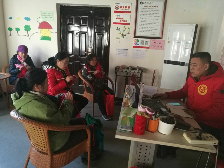 在豫丰养老服务站里,每天都能看到这些叔叔、阿姨们的身影。他们把这里当成自己的家,上午、下午轮流值班为来社区的居民家人们真诚的服务。热心的牛玉英阿姨拿出音箱,带领大家在小游园里一起跳养生操,维持秩序。既锻炼了身体又贡献了自己的一份爱心,她用自己的爱心把一缕阳光送进每个人的心里,除此之外,她还带领这群姐妹们一起织围巾,送到那些高龄老人家中。