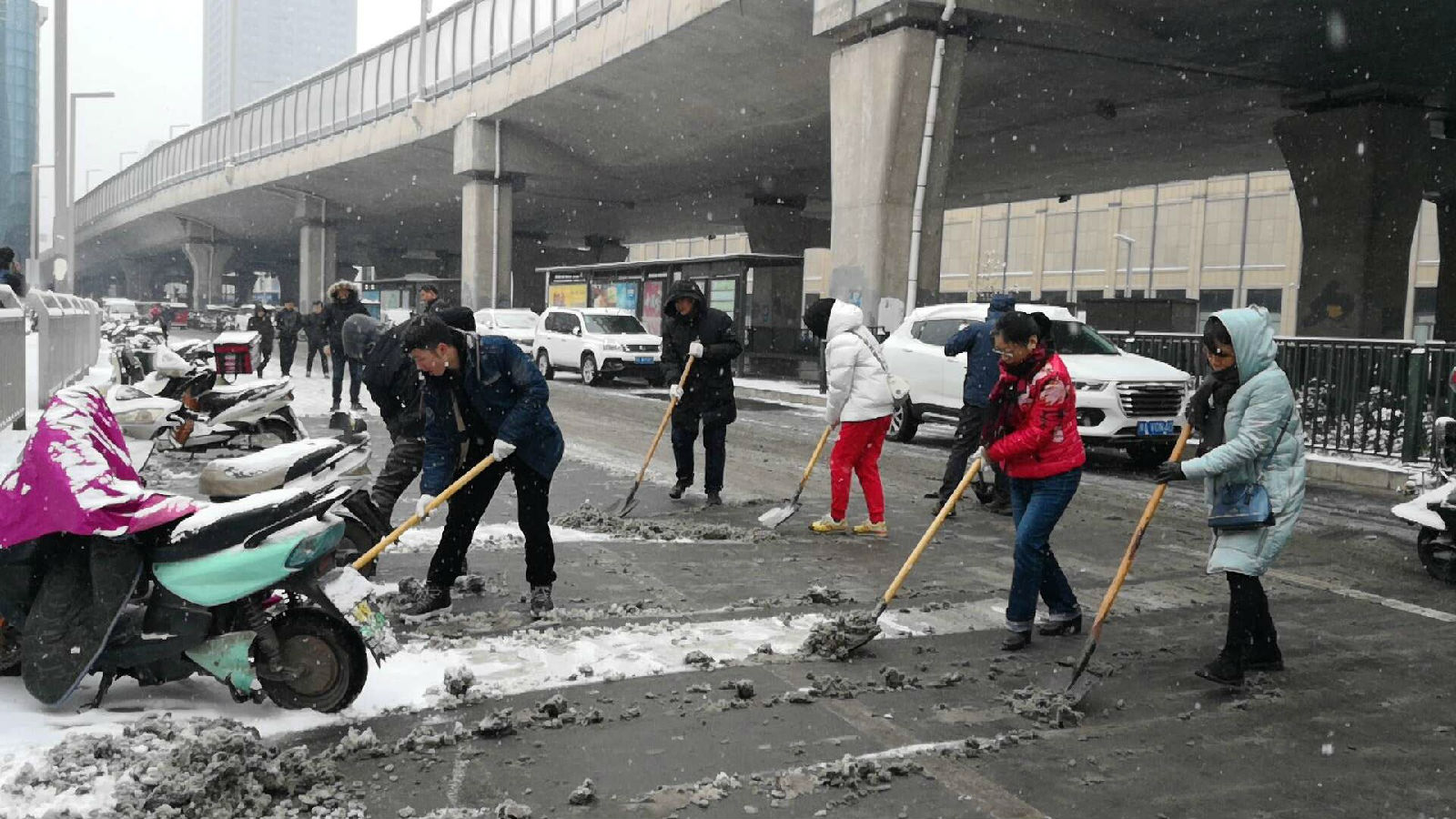局干部职工在白刘军局长的带领下带上工具来到分包区域区扫雪,一到工作地点,扫雪队伍就投入到紧张的劳动之中,大家扫的扫、钗的钗,干得热火朝天,尽管天气寒冷,大家却汗流浃背,干劲十足,经过两多小时的努力,区域内的冰雪得到了清理,确保了群众的出行安全。扫雪除冰活动得到了群众的广泛好评。此次铲雪活动增强了党政机关的凝聚力和向心力,展示了局机关干部的团结协作提高工作效率的精神风貌。