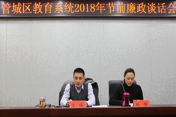 按照上级有关加强节日期间党风廉政建设教育活动安排,为进一步落实全面从严治党,强化廉洁自律教育,预防节日腐败,2月1日下午,区教育体育局在局东院会议室召开了2018年节前廉政谈话会。局班子成员、机关各科室负责人、全区中小学幼儿园校(园)长,共计90余人参加会议。会议由区教育体育局纪检组长赵芳主持。