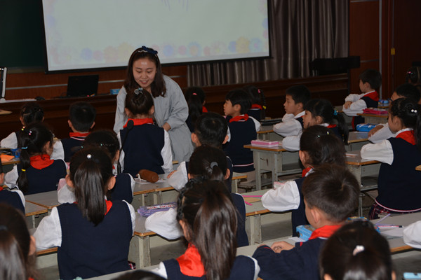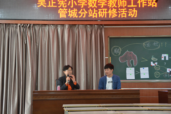 此次研修的主题是“图形与几何”教学。上午,吴正宪老师和外国语小学的路伟强老师分别对“面积”进行了同课异构;下午,实验小学的童欣老师作了“角的初步认识”一课。吴正宪老师对两位青年教师的课进行了精彩点评。