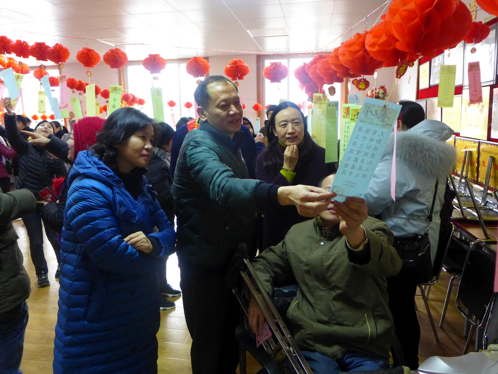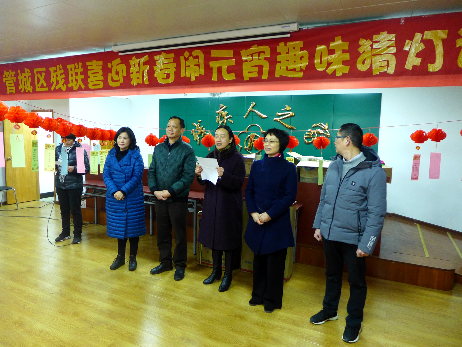 元宵节来临之际,为深入贯彻落实党的十九大精神,积极践行社会主义核心价值观,让辖区残障人士感受到传统节日快乐、祥和、幸福的氛围。2月18日,管城区残联在区残疾人综合服务中心举办了“喜迎新春闹元宵、趣味猜灯谜”活动,市残联副理事长包亚斌、组联部部长于晓亭、区委组织部常务副部长巴丽霞、区残联理事长游东梅、区纪委派驻区民政局纪检监察组组长郝晓伟,各乡、街道残联专干、残疾人及其亲属、助残志愿者共100余人参加了此次活动。