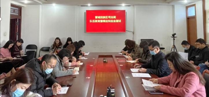集中学习:3月15日上午,管城回族区司法局在局办公室召开队伍教育整顿工作会。副局长马宁带领全体人员学习了政法队伍教育整顿应知应会知识。会上共学习了党的性质、党的指导思想、党的三大历史任务、党的群众路线、主要矛盾、四项基本原则、“三型政党”的内涵、党的建设必须坚决实现以下五项基本要求、党员必须履行下列任务等应知应会内容。应知应会测试:一是组织局机关全体人员进行了队伍教育整顿应知应会测试,二是各司法所同步组织应知应会测试,共计四十余人参加。通过本次测试,进一步加深了广大党员干部对政法队伍教育整顿应知应会内容的理解和掌握,激发了主动学习的紧迫感,达到了以测促学、以学促用的目的,对加强我局队伍建设起到了积极的促进作用。