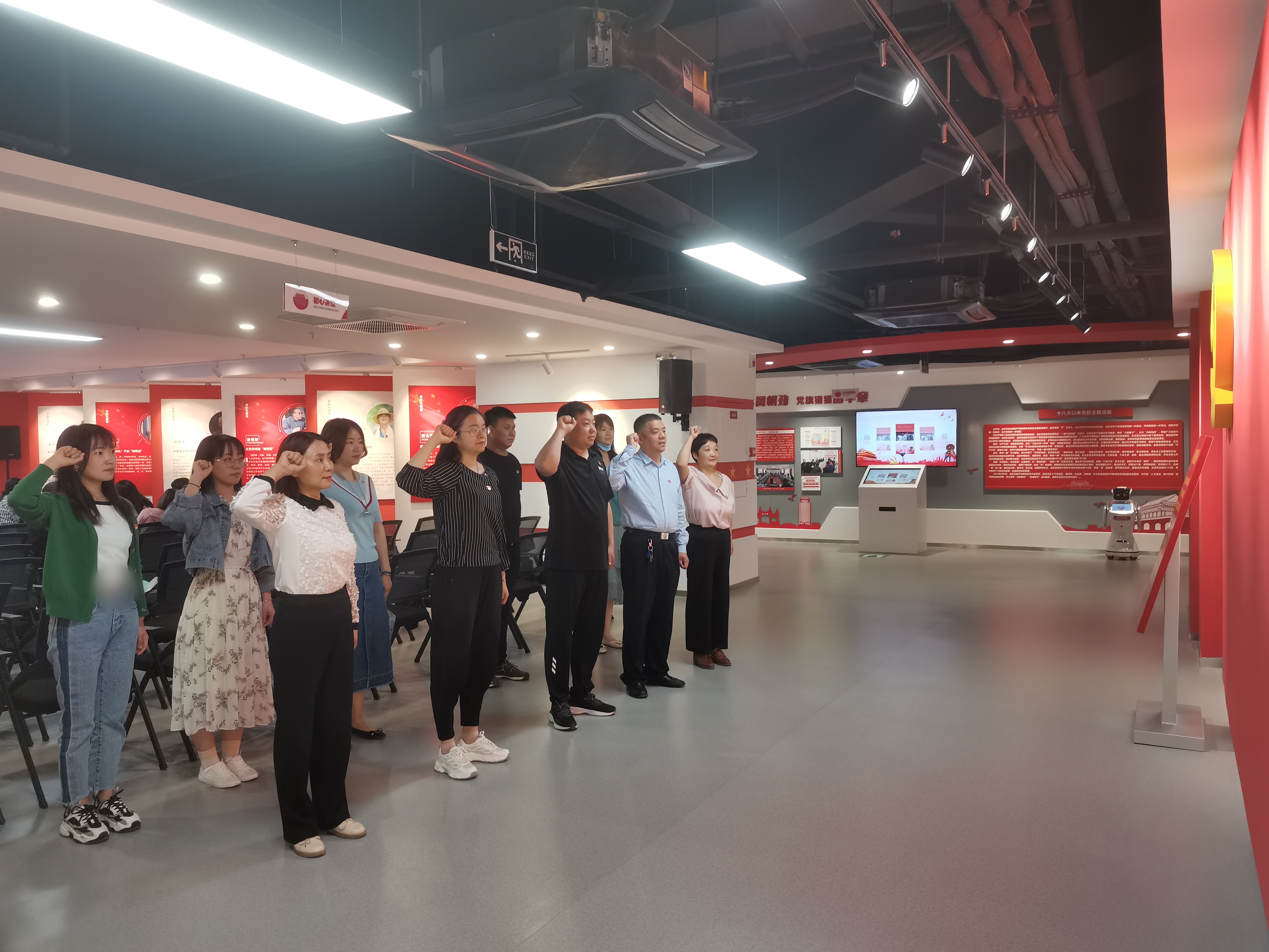 在讲解员的引导下,党员同志们从一层到三层依次参观了初心馆党的光辉历程、廉政文化展示区、管城特色党建展示区、智慧党建体验区等功能区,重温了中国人民在党中央的领导下自力更生、艰苦奋斗走向富强的过程。随后,全体党员集体观看了专题片《初心永恒》,重温入党誓词。