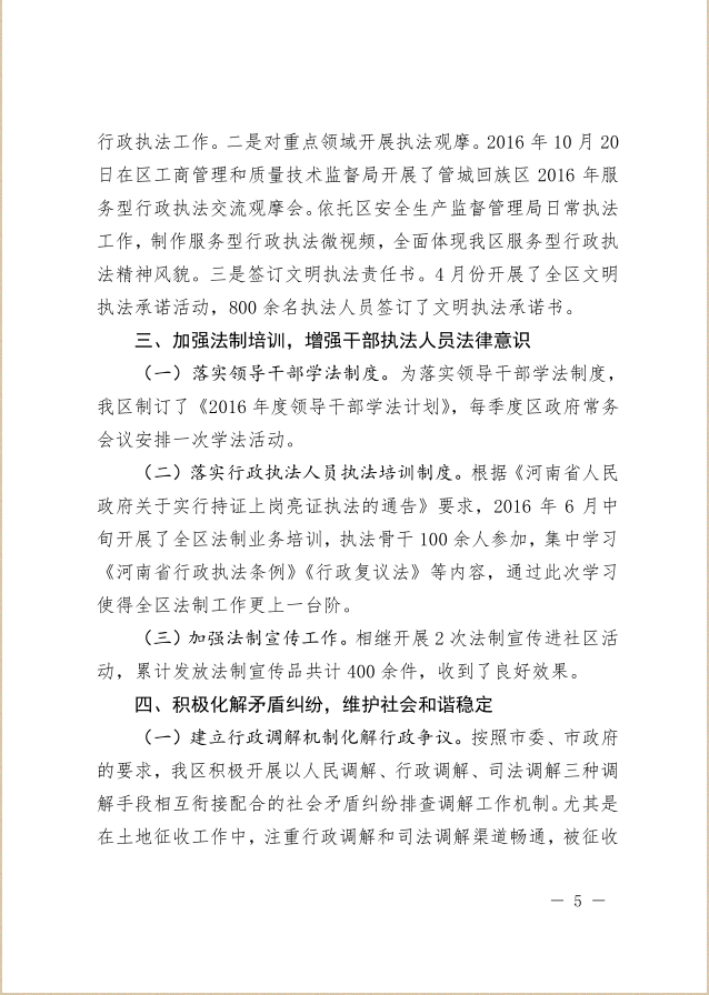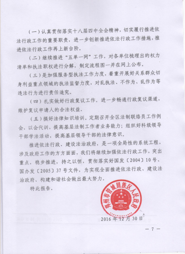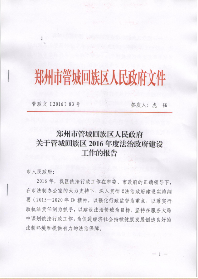 郑州市管城回族区人民政府关于管城回族区2016年度法治政府建设工作的报告