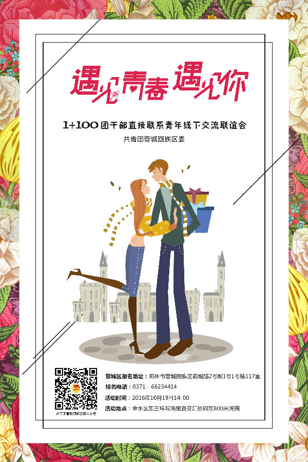为增强团组织的凝聚力,丰富活跃广大青年的精神生活,共青团管城回族区委员会决定举行2016年“遇见青春遇见你”青年联谊活动,具体活动通知如下: