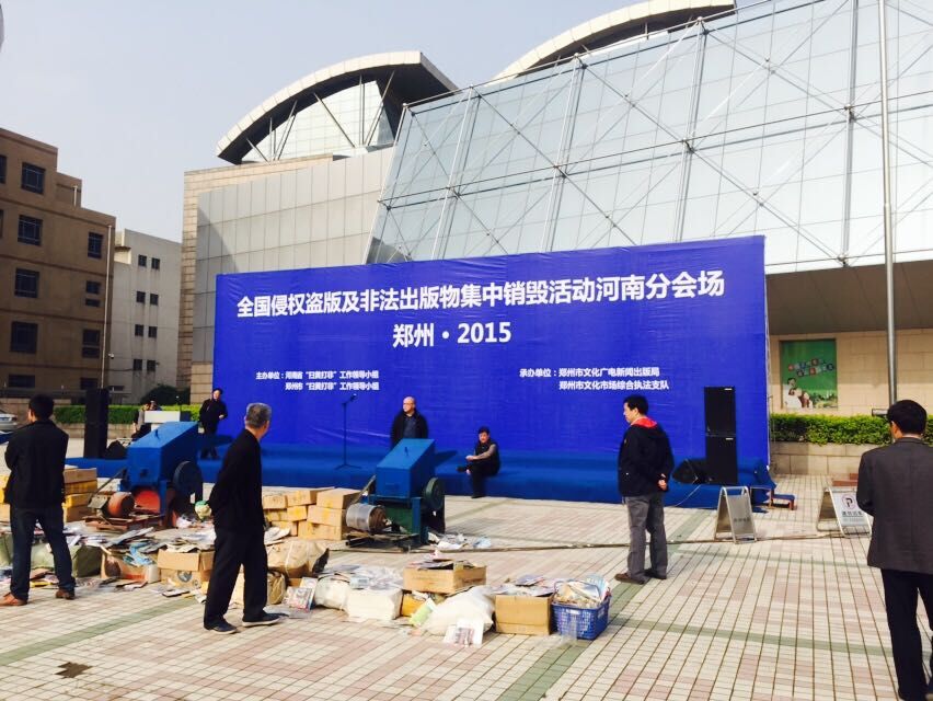 4月20日,我区文化市场稽查执法人员参加了由省“扫黄打非”工作领导小组主办,市扫黄办承办,市文化广电新闻出版局、市成员单位、各县区文化市场执法人员及文化企业参与的全国打击侵权盗版及非法出版物集中销毁活动(河南分会场)。